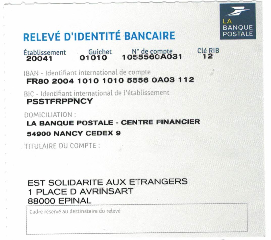 Vous pouvez adhérer à l’association en envoyant ce bulletin d’adhésion par mail ou courrier (Est Solidarité 1 place d’Avrinsart 88000 Epinal) >> bulletin d’adhésion. Pour terminer votre adhésion envoyez un chèque de 10€ (= cotisation annuelle) à l’ordre d’Est Solidarité ou faites un virement de 10€ (RIB disponible en cliquant ici).